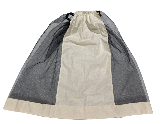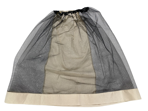This is the standard black veil, with elastic in the top. It fits over your own hat and has a material back section so the back of your neck so you won't get burnt. The net then tucks into your shirt.