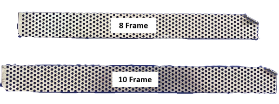 Ventilated Entrance Closer made of perforated steel. This seals the entrance when moving the hive, whilst still allowing air flow to come through.