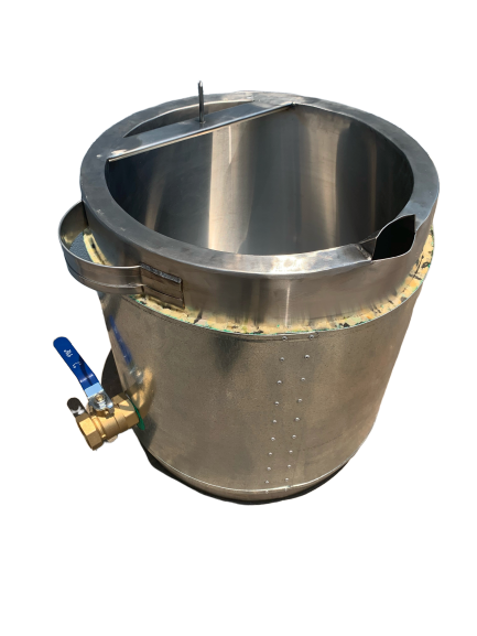This is the perfect solution to uncapping, for those with 20-100 hives. The cappings (with honey) are melted, and flow into a bucket. Next day a solid block of wax floats on top of the honey. Open the gate - the honey flows out. Lift the block of wax off the top.