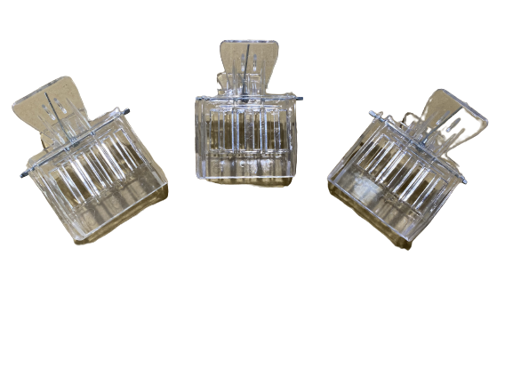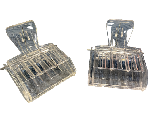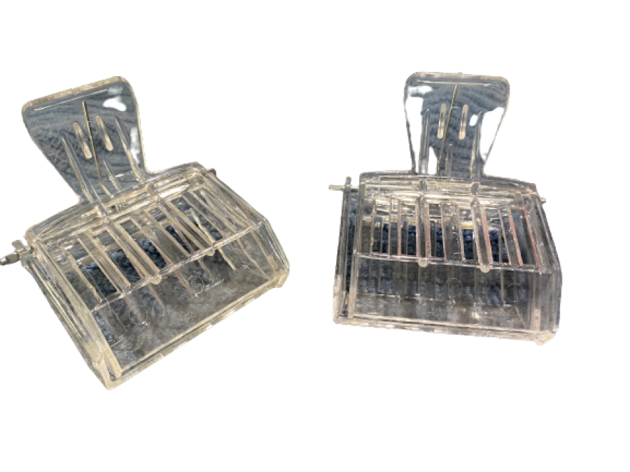 Also known as the "hair clip" queen catcher, this device has a spring action to snap the cage shut around the queen. Slots allow any worker bees to escape. An Easy way to capture the queen without harming her.