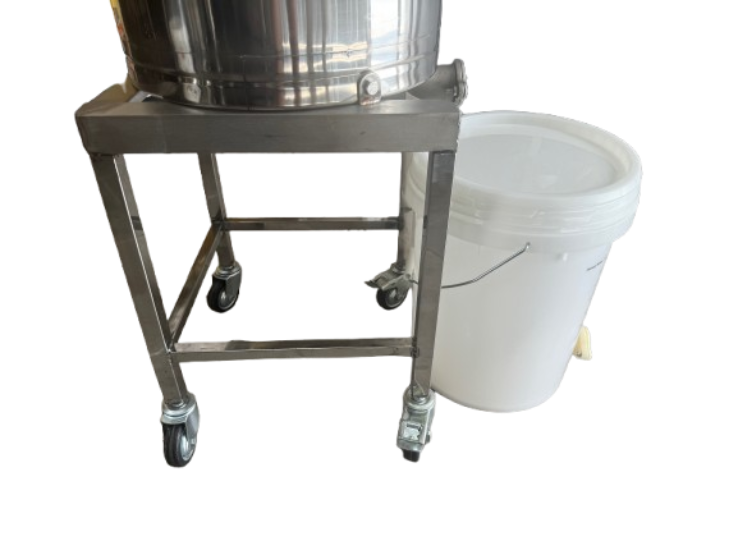These are ideal for the people that have a small number of hives. With the side crank handle extracting or the spinning out of honey has become much easier than the older top winder models. These smaller models are only available in Lateral design and are very efficient. All extractors are made of stainless steel including the mobile stands with two lockable castors. This enables you two wheel it outside for cleaning. Simply hose out and allow to dry. All extractors are supplied with a bucket with honey gate.