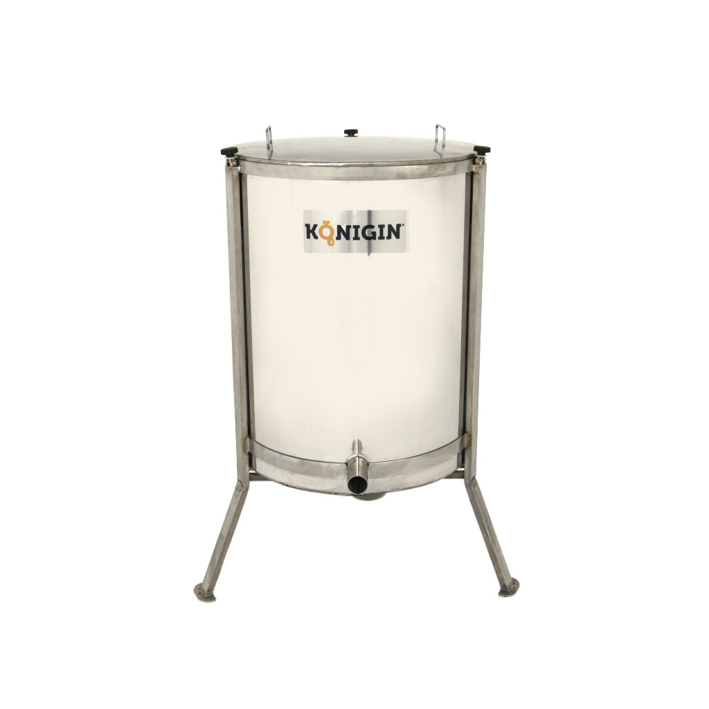 The VC-64-230 Wax Melter and Extractor is a robust, electrically heated unit designed for efficient wax melting and extraction. With a 640 mm diameter, it allows beekeepers to melt wax into blocks or extract wax from frames with ease. The lockable lid and bearing system ensure safe and reliable operation, while the compact design makes it versatile for a variety of production settings.